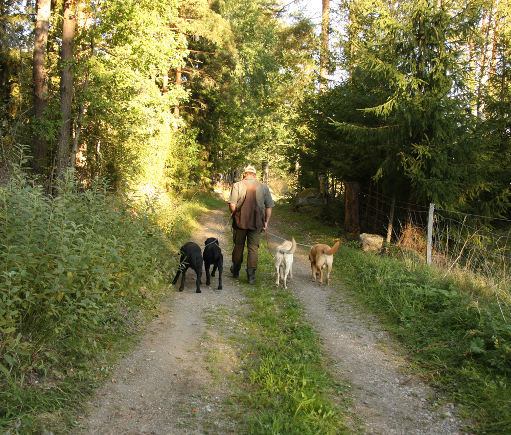 Rätt så möra är vi efter en hel dags jakt men nöjda och glada med hundarnas insatser.